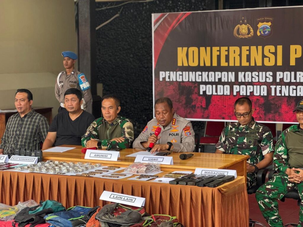 NABIRE — Aparat gabungan TNI-Polri menggelar konferensi pers terkait perkembangan upaya penegakan hukum terhadap target daftar pencarian orang (DPO) kelompok kriminal bersenjata (KKB) di Kabupaten Nabire yang digelar di Polres Nabire pada Senin (2/3/2026) pukul 16.00 WIT.