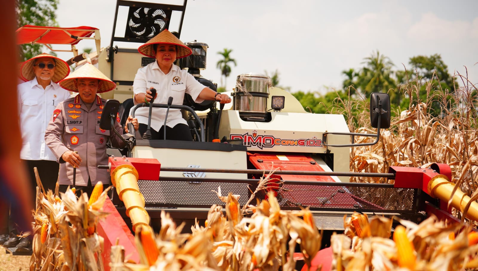 Tak hanya panen, kegiatan ini juga disertai dengan penyaluran 300 paket bantuan sembako kepada masyarakat serta 15 mesin pipil jagung portable untuk kelompok tani.