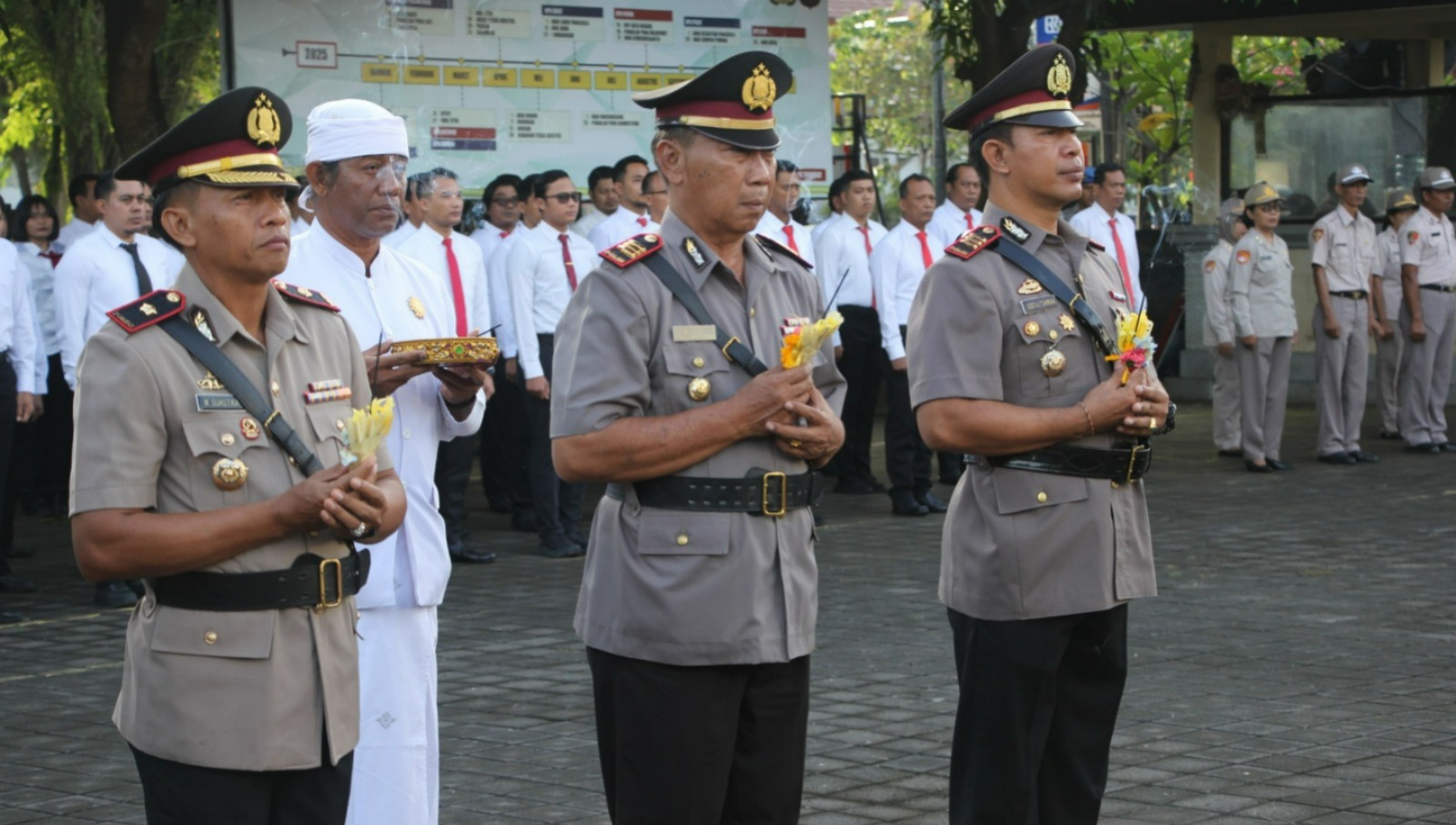 Upacara tersebut dipimpin langsung oleh Kapolres Jembrana AKBP Kadek Citra Dewi Suparwati, S.H., S.I.K., M.I.K. selaku Inspektur Upacara. Kabag SDM Polres Jembrana AKP I Putu Budi Santika, S.H. bertindak sebagai Perwira Upacara, sementara Komandan Upacara dijabat oleh Kanit 2 Satreskrim Polres Jembrana IPTU I Gusti Komang Astuna, S.H.