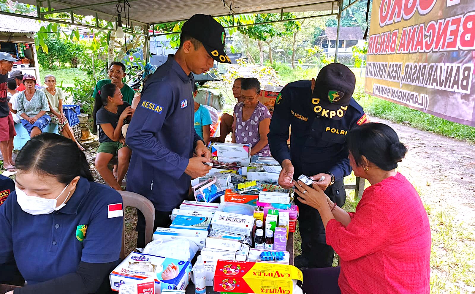 Aiptu Gst Ngurah Adi Sadnyana Putra menjelaskan bahwa layanan yang diberikan meliputi pemeriksaan kesehatan dasar, pemeriksaan laboratorium sederhana seperti cek gula darah, asam urat, dan kolesterol, pemberian terapi sesuai indikasi medis, serta konsultasi kesehatan kepada warga terdampak banjir.