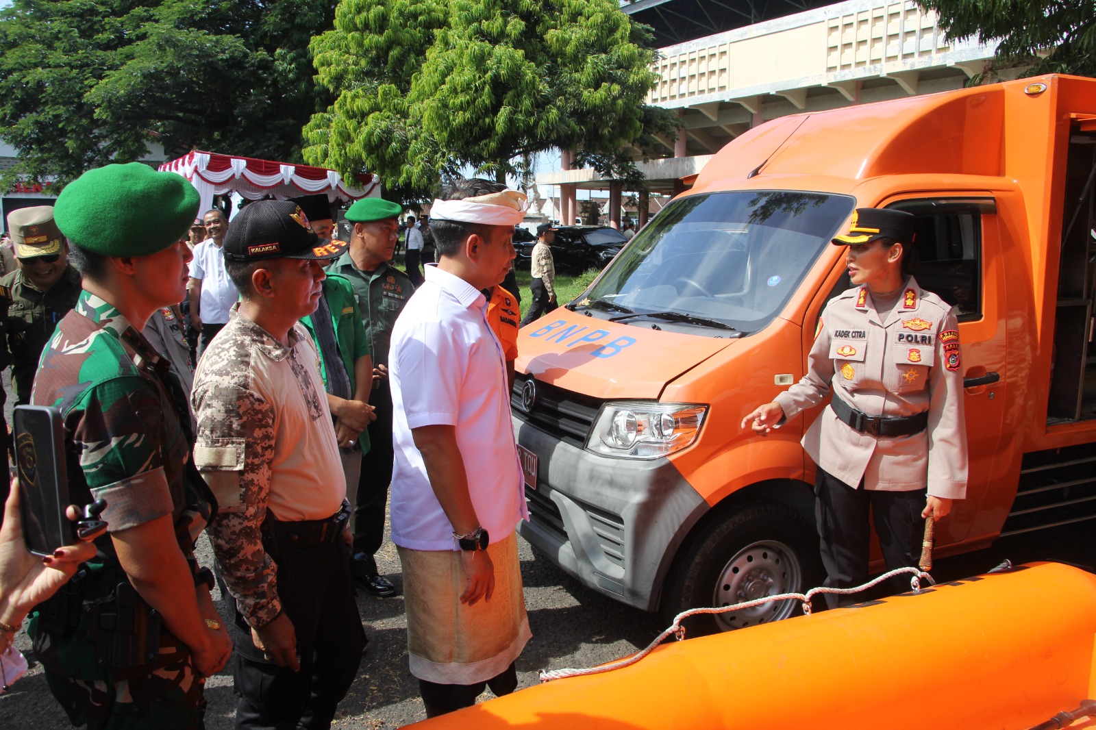 Kapolres Jembrana juga melakukan pengecekan sarana pendukung penanggulangan bencana seperti kendaraan operasional, peralatan evakuasi, logistik penyelamatan, hingga perlengkapan medis untuk memastikan semuanya siap digunakan sewaktu-waktu.