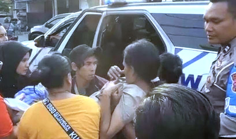 Melihat kejadian itu, mobil patroli dan pengawalan (Patwal) Ditlantas Polda Jatim langsung berhenti dan mendatangi kerumunan warga.